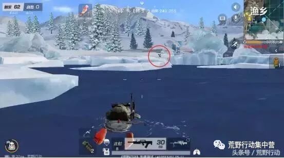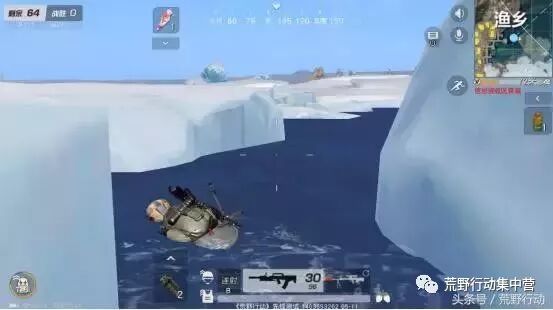 补漏君本来打算溜,因为是在水里,水里打陆地上的敌人,有点吃亏! 但是又转念想了想,不对啊,我带着把水陆步枪呢!而且这周围都是冰块,我潜水绕过去,突然冒出头来偷袭敌人,他肯定想不到! 相比岸上的敌人被淘汰后是有点懵的!怎么突然间就在湖里冒出个人来?还带的是水陆步枪! 这里补漏君完美地利用了湖面上的浮冰的掩护,地形就是我的吉利服!从敌人眼皮底下,神不知鬼不觉地冒出来偷袭!史上最强LYB,就这么诞生了! 这种利用湖面浮冰,为自己的行动打掩护的新型LYB打法,实在是太强,幸好也只有渔乡这里才有浮冰,不然真的不知道拿这种新型LYB打法怎么办了! 各位小伙伴,是不是都没见过这种新型的LYB打法呢?补漏君猜可能也只有在荒野行动的新地图里才能遇见!如果以后在渔乡战斗,记得多利用湖面上的浮冰做掩护哟!