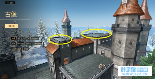 魏巍古堡傲然耸立,庄严神秘油然而生。古堡是当前地图中建筑最为特殊的一种,本身内部结构纷繁复杂,给了很多战术大师开发战术的机会,但复杂的结构同样也赋予了其易守难攻的特点。上图黄圈内两地为古堡的最高点且相互连通,能够观察到古堡内大部分位置的行进路线,入口仅有一个,无论是进攻还是防守都是绝佳位置。 二、火山谷地
