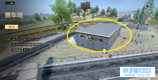 城中有湖水波清秀,湖中有城风光旖旎。水城也是一处官方地图没有标注的地域,为图一中红色圈内的区域。水城是全图中唯一一处水陆交融的小城,是考验玩家战略部署灵活多变的最强地域。在这里会刷新水陆两用步枪(水陆两用武器刷新点为靠水的地域,普通地域不会刷新),需要玩家依据当前形势选择武器。上图黄圈内房屋可观察四面敌方动向,具有高点优势,且周围地势凹凸,方便撤离。 六、赛车场