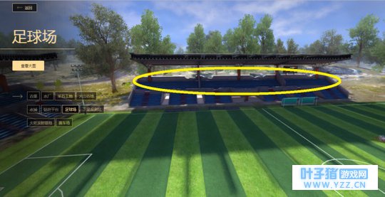 烈日当空照大地,远观尽是汗淋漓。采石工地地形呈梯状层次分布,物资主要集中在内部的低处,房屋机构简易,很符合现实,存在很多机器掩体,不适合作为物资搜集区。上图黄圈内三个采石运输房,内部可观察四方,掩体全方位,窗户用于射击,躲进通道易守难攻,当然,要多注意房子上方高地的情况,注意躲避手雷轰炸即可。 十、足球场