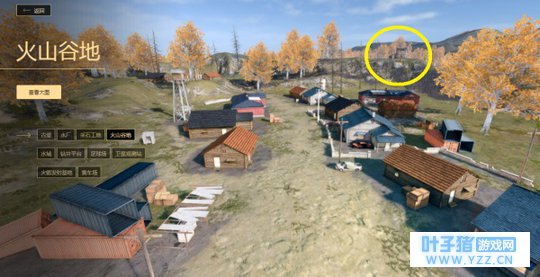 谁念西风独自凉?萧萧黄叶闭疏窗。火山谷地这一片区域属于内低外高的圆形地势,区域内建筑物资分布比较集中,建筑内部结构一般。想要在区域内狙击对手,只有跟随蹲点或者刚枪,且具有较大的风险。上图黄圈内炮楼位置是整个火山谷地的制高点,无树木遮挡视线,可将火山谷地一览无余,实为最佳狙击点。谷地上方的石头也是一种选择,只是屁股后面有人的话那就不好说了。 三、火箭发射基地