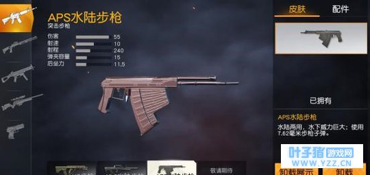 APS水陆步枪的伤害值高达55!是目前所有步枪里面伤害数值最高的!55点的伤害值甚至比一些狙击枪的伤害还高! 小伙伴看到这个数值的时候,是不是也被吓到了呢?这把APS水陆步枪可以说是近战以及水中战斗最强步枪了! 这把枪只在靠近水域的资源点刷新!比如度假山庄和北港之间的群岛带!