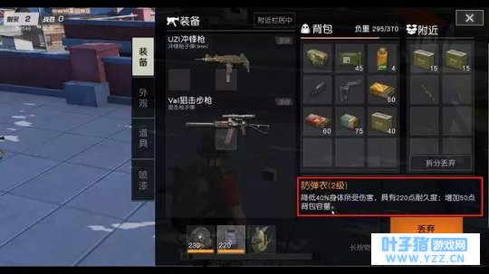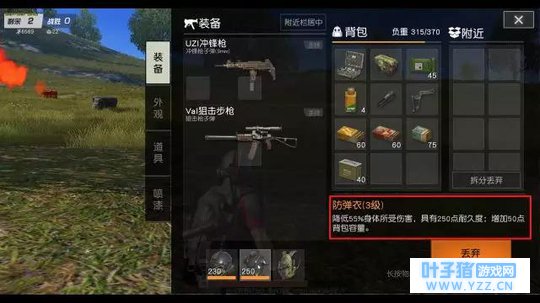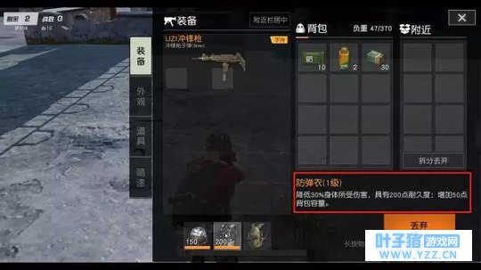 (该图不代表原画质) 1-3级防弹衣扩容加成 除了背包能增加基础容量之外,游戏里的防弹衣也是可以进行扩容的。不管是1级防弹衣还是2、3级防弹衣,都可以在背包的基础上再额外增加约50点容量。 也就是说,目前游戏里单人最大负荷容量约为120(自身容量)+250(三级包容量)+50(防弹衣扩容 )=420! 综上来看,一个二级包+任意一级防弹衣就能获得很可观的负荷容量,而且获得难度也不大。在这里建议大家可以把它们放在落地后寻找装备的第二顺位,你问第一是啥?肯定是先找枪呀! 介绍完游戏里的背包系统,下面来告诉大家该如何合理利用好背包容量。 药品拾取顺序 03、绷带
