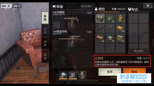 (该图不代表原画质) 止血包的搜寻相对比较难,主要分布在室内。使用时间需要约6秒,最多能将活跃值回复到75点。 每个止血包会占用10点容量,在结合使用时间是绷带和饮料的两倍这一特点来看,携带2个左右就可以了,带太多的话会挤压其他必须装备(如子弹、倍镜)的空间。 06、医疗箱