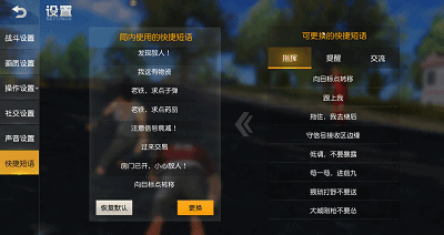 荒友们可以看到,快捷短语按类别可分为 指挥、提醒以及交流3类 ,你们可以根据自己平时的使用习惯在设置界面进行替换。