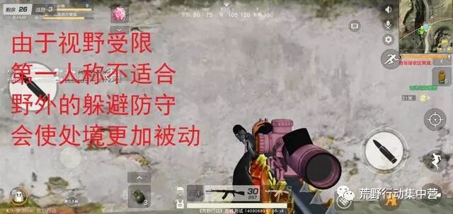 由于两种模式视野的不同,第三人称模式适合侦查、奔跑、防守等情况,利于收集战斗信息实施战术性进攻。而第一人称的会使得射击操作更加直观真实,更适合正面刚枪、搜集物资等情况。