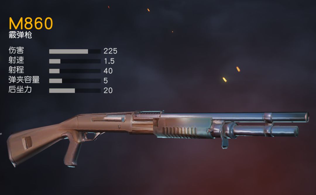 M860 是五发弹容的霰弹枪,拥有更高的容错率,同时可以佩戴霰弹枪补偿器。减小后座,同时收束弹药的射击范围。