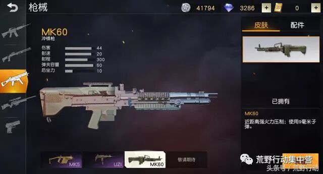 MK60是第一把进入空投的冲锋枪,它拥有不输步枪的伤害、荒野第二的射速、冲锋枪中最快的射程、超高的弹夹容量,后坐力还非常低,在团战中能够输出非常高的火力,所以团战中敌人有了它,这波团可能没法打。 05式微声冲锋枪