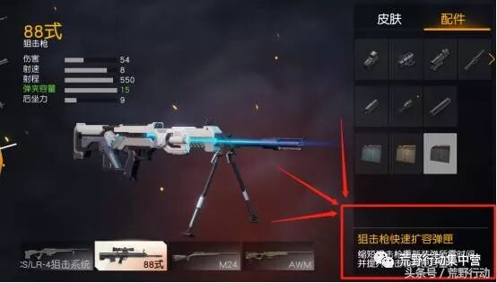 连发狙击枪是很多小伙伴都喜欢用的武器,特别是88式,随处可见又好用! 用过88式的小伙伴们肯定都遇到过这样的事,对手被我们用88式远程精准压制,只差一枪,对手就会被淘汰,但我们却开始换弹,10发子弹被我们打完了! 这个时候,狙击枪扩容弹夹的作用就很大了!多5发子弹,让你的容错率更高(枪马也不怕了)! TOP 1 枪托