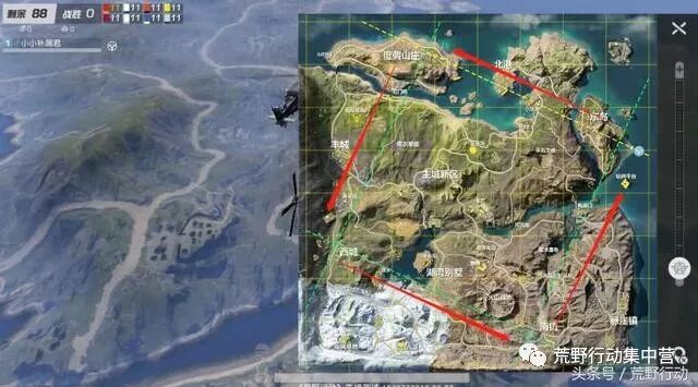 关于跳伞,大家应该都清楚新玩法中的航线,它与平常不一样,一共有四条,每条有两支队伍。我们一定要尽早跳伞,因为四条航线交错,太晚跳的话可能落地碰到的敌人早已拿好了枪! 集中落地
