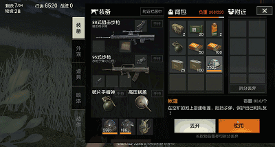 这个帐篷是在黑夜模式下几乎随处可见的一种物资,自身容量达到了80,可谓是非常重的了。但是这个东西有着非常逆天的功能,帐篷能够挡住子弹,保护自身安全。帐篷的耐久度竟然高达2500,这是个什么概念呢?就是两辆车的耐久度之和,简直就是随身携带的掩体。