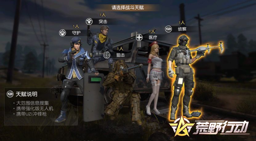侦察和医疗两种天赋初始配备了 无人机 医疗天赋配备的 救援无人机 可以对受伤队友进行 远程救助 是保持全队持久战斗力的神器