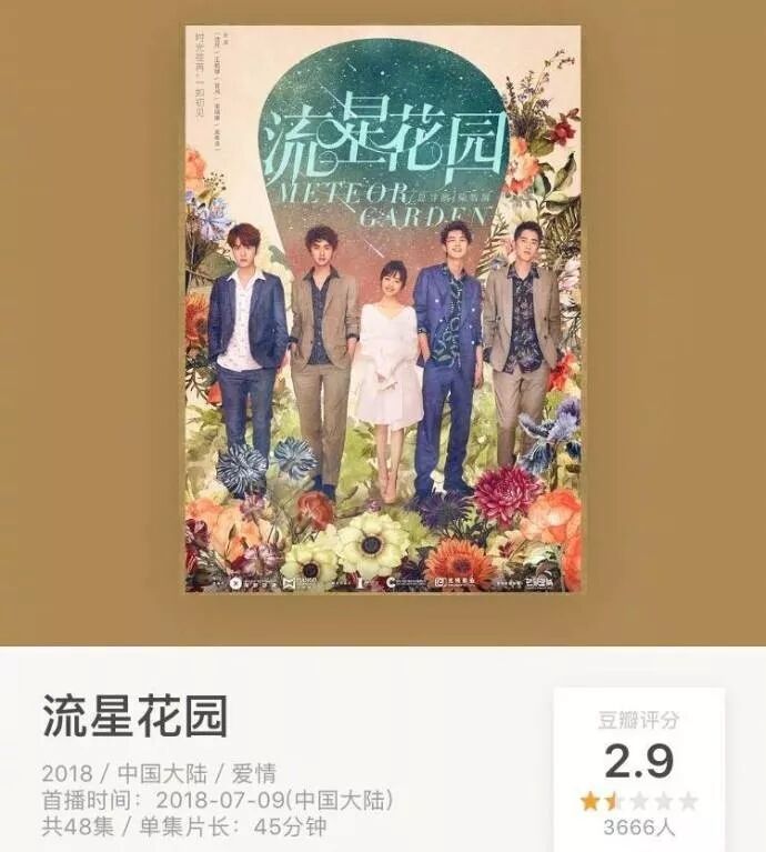 流星花园收视率下降破一,网友:连吐槽的心情都没了!