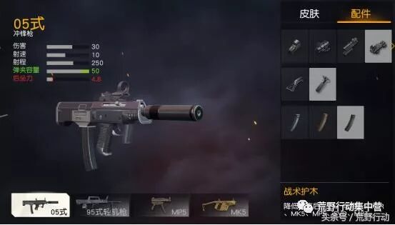 AK-47是很多荒野老手的信仰,高伤害是它的最大亮点,48点的伤害,要知道,落地的对手们,可都是没有带头盔的!也就是说,我们只要瞄准对手的头部,给他们来一枪暴击,一枪一个对手,这不是梦!如果我们落地能背着一把AK-47,真的是一件非常幸福的事! TOP 2 冲锋枪新贵 05式冲锋枪