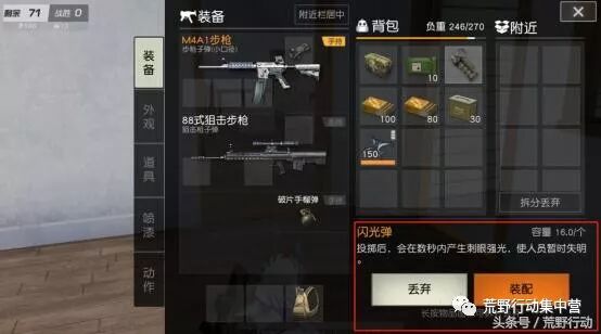 八倍镜、十五倍镜在普通模式当中都是稀有配件,很多玩家一局游戏下来都不一定能遇到,但是在新玩法当中,远距离作战的机会太少,一般都是在高速移动中作战,高倍镜根本没有发挥空间。 闪光弹