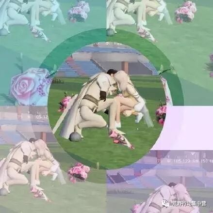 开启游戏界面在广场瞎转悠,看见感兴趣的妹子点了进去,想要了解关注一波。点开相册的封面图是这样子的,足球场中央,礼服婚纱,遍地鲜花,这俩还借着错位接个吻。干什么呀这是,我的心微微颤了一下。找CP是不可能的了,这辈子我都不找CP的,我还是好好玩游戏吧。