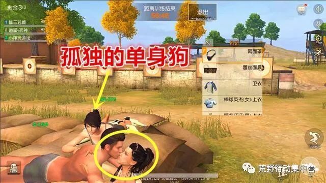 在出生岛,对于一个单身狗来说,首先是关掉话筒和声音,最大的兴趣莫过于来回的溜达,一个人就是这么潇洒,不用围着CP来回转不用听着他们虐狗的语音聊天。就在趴下回头的那一刻,竟然看到了这样一个羞羞的画面,扎心×2!