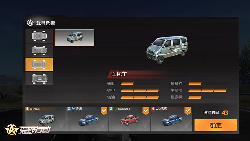 Andrea:这个问题就很硬核了: 轿车 的机动性和操控性最好,但生命值和护甲低,适合快速转移发育打游击战; 吉普 的机动性和操控性较好,生命值和护甲适中,可以根据载具升级情况做出更多的战斗策略选择; 面包车 的生命值和护甲高,适合以载具为掩体的阵地战,同时在载具撞击时也占据绝对优势; 皮卡 各项属性都很中庸,各种战斗状况都不会吃亏,但也没有明显优势,喜欢稳扎稳打的玩家可以尝试一下~