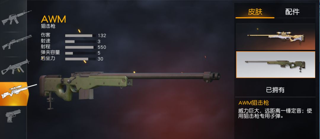 由以上信息可以看出: 装配配件种类 :AWM= CS/LR-4 射速:AWM <CS/LR-4 伤害:AWM>CS/LR-4 后坐力:AWM>>CS/LR-4 弹夹容量:AWM=CS/LR-4 射程:AWM>CS/LR-4