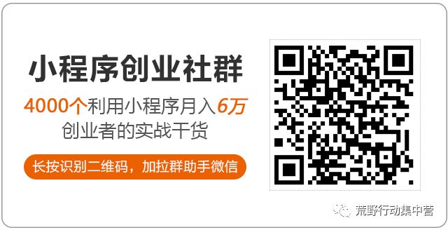 如果你想知道更多的创业技巧,可以进群免费学习 ,这是 4000多个 利用小程序 月入 6万 的创业者的实战干货 。