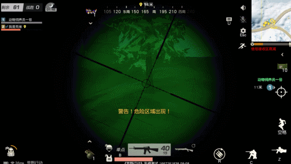 在黑夜中 微光 夜视仪 是非常实用的 ,由于在微光夜视仪中被观察的人体会发光 ,所以我们在深夜中,最好不要在野外空旷地区乱跑,要么做野外伏地魔,要么苟在房子里不要乱动。这样做能够有效防止被对手看到后偷袭。