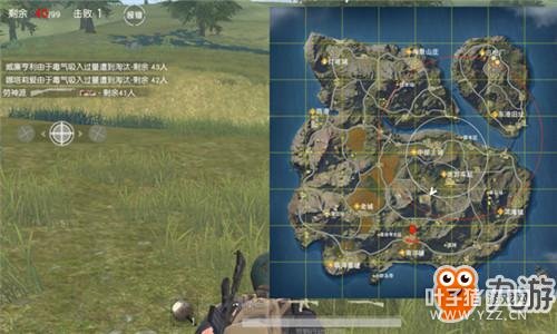 一般绕毒边跑,就是绕毒边的周围,因为毒边为来人的概率是比较小的,抗毒在外面的人基本没有,所以毒边尽量跑到,如图这样,这个点的毒边是缩圈最慢的,最远的一个边会缩的最快,尽量先跑到缩毒慢点的圈,跑的时候也只要看一遍有没有人即可,控制好时间,时间差不多,就可以往中心跑,因为毒边在你后面,基本也只要看着前面是否有人,这样就是一个比较舒服的感觉,防止LYB!