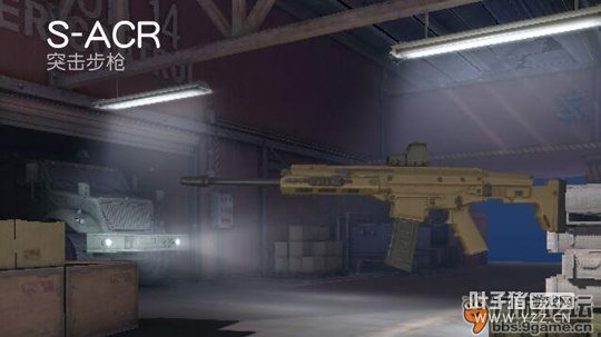 S-ACR 优点:射速中等,手感极佳,威力跟M4A1一样,但个人感觉比M4A1好。 推荐配件:四倍镜、步枪消音器、步枪快速扩容弹夹。