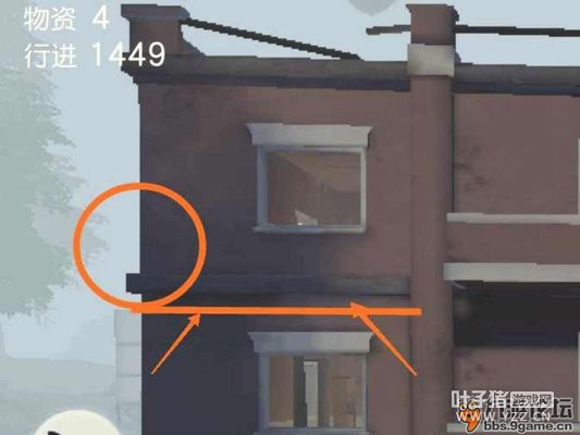 上面这张图就是三层楼房,是前期想捡号装备最佳选择,其原因虽占地面积小但是是游戏中所有房屋中的装备含量最多最齐全的建筑。若在此高层建筑里面遇到后面人追上来先观察清楚敌方火力配置,根据情况判断对方有几个人,自己打不打得赢, 如果刚不过敌方,可以选择直接跳窗。 这里小伙伴可能要问了,三层楼跳下去是要掉血的,但你们可能不知道的一个小技巧是在图中红圈位置,楼外墙壁上有一道很窄的梁虽然窄但是足够支撑玩家踩在上面 接下来就移动到楼房外墙壁拐角处,在楼房里面的人是看不见你的,会判断你跳窗逃跑,最多到窗子前查看一下你所要做的就是等并且从耳机中声音远近判断敌方是否已经离开,然后蹲下在突出梁处查看敌人的方位。这时敌人已经转身捡装备去了,你要做的就是利用自己手中的武器杀他个回马枪让他措手不及。