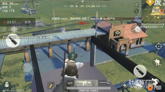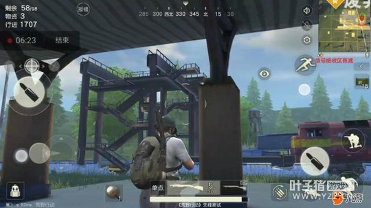 可以在铁架的最高点,靠近楼梯,靠近下面资源又多又没围墙的候车站这边,等别人来这里捡资源,不需要开镜,爬出一下身子就可以把他们快速击杀了,然后爬回去隐蔽