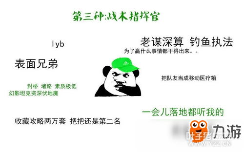 荒野行动中有各种各样的玩家,除了跟技术有关之外,也跟每一个人玩游戏的性格有很大的关系。下面整理了一些常见的玩家类型,大家快点来对号入座吧。