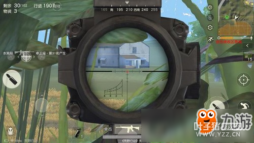 第二个教给大家的是当你趴在草丛中,如果看到人,不需要蹲着或者站着瞄准,可以根据草丛的缝隙趴着瞄准,这样更加隐蔽,更加安全。