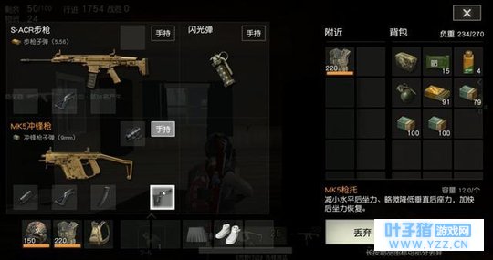 都知道绷带、急救包可以回血,但是它们都只能帮我们补到75的活跃值,剩下的就得靠运动饮料了!而且运动饮料相比起来占背包空间比较小,基本上见到就捡准没错。一定记得,即使你身法灵敏、枪枪爆头,但没血的情况下就天然处于对拼的劣势状态,所以药品非常重要! 武器配件