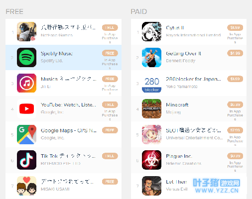 前段时间,网易的PUBG类游戏《荒野行动》火遍大江南北,如今这把火又烧到日本去了。 据APP追踪商appannie显示,截至今年1月19日,荒野行动在日本区APP商店免费榜排名榜首(下图),领先youtube、instagram和twitter等知名软件。