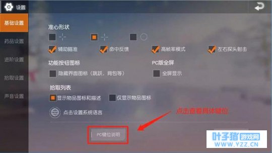 而PC端是这样的,打开基础设置,单击键位说明就可以查看键位设置啦~