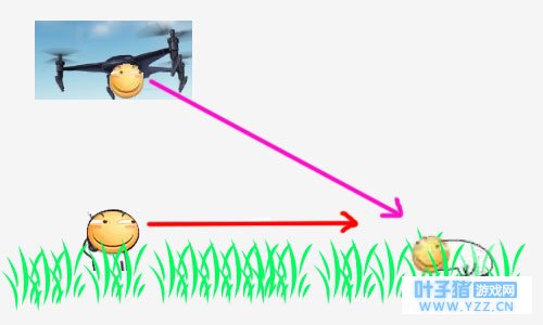 ①.操作无人机时,需要将武器收回(pc版按键是X) ②.操控无人机与人物的移动类似,pc端是用WASD进行控制,前后左右前进。 ③.操作无人机时,你的人物是在原地不动,同时也会被攻击。 使用策略篇: 一览无余的高空视野 敌人无所遁形 在荒野行动中,我们人物的视角都在2m以下,当处于茂密的草丛时,我们很难发现敌人的位置,尤其是伏地魔,往往危险就在身边,却被忽略。 而无人机提供的高空视野,可以让我们在空中俯视地面,任何伏地魔、幻影坦克都别想在“它”的眼皮底下蒙混过关。 无人机与人物的视角对比图: