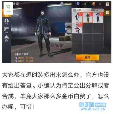 网友的终结者2作为另一款吃鸡游戏也火热,只是画面太美了,小编玩了就吐。所以,只能玩荒野行动,毕竟很多朋友都在玩。(想和小编一起的玩私信小编),终结者2很早就开始了商业化,钻石可以买金币,金币可以抽时装。那土豪们为了一件时装冲个几万时装重复了怎么办?