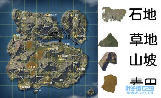 《荒野行动》地形划分 石头地区比价空旷,掩体主要是以石头为主,草地分布的比较广;掩体一般都是树木和草丛,尤其是在草丛里蹲伏和会很好的隐蔽自己不被发现,再配上吉利服更是可以像幽灵一样潜伏到决战圈;山坡地区很适合居高临下;麦田地区与草地同理,据说配上麦田吉利服会相当隐蔽。 车辆地点分布 载具在荒野行动中扮演了很重要的角色,目前版本中会有四种载具:吉普车、越野车、摩托车、面包车。这四种车里越野车的稳定性最好,可以乘坐两人,缺点是敞篷容易被爆头;吉普车俗称开黑神器,拥有5个座位;面包车也有国产神车的美誉,拥有霸气的小广告和车牌号,让人看着就这给它两枪;摩托车也叫侉子,缺点是容易侧翻。