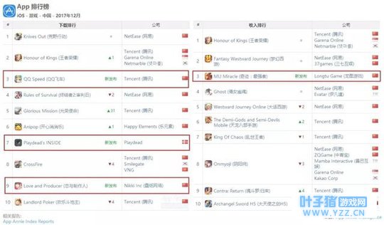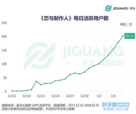 Appannie 12月手游报告(仅仅是12月份) 1月12日,市场研究机构极光大数据报告称,截至2018年1月7日,上线不足一个月的《恋与制作人》,安装数量已经达到711.13万,同时,《恋与制作人》每日活跃用户数同样保持高速增长,日活跃用户数已经达到202.01万。并且,《恋与制作人》的DAU增长曲线也和安装数量的增长曲线保持了惊人的一致。用户性别上,超94.2%为女性玩家,且一二线城市玩家占比很高。
