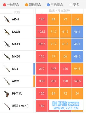 荒野行动 165与145耐久的三级甲区别在于165可以多抵挡1发556子弹,而两者都比全新的二级甲好。 所以得出结论:145耐久以上的三级甲要比二级甲好 二、头盔: 头盔减伤公式:武器基础伤害*2.5*(100%-头盔减伤比例)=你受到的伤害 以毛瑟狙击枪为例(狙的爆头比较多,而毛瑟相对比较容易捡到) 打1个三级头盔=72*2.5*0.45(100%-55%)=81 而打二级和一级头盔都是一枪秒 再看步枪:无论AK还是M4A1打2级头或者一级头都是2枪倒(其中AK打3级头也只需要2枪,而5.56步枪需要3枪)