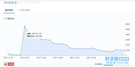 从微指数的角度来看,《荒野行动》在11月30日取得峰值后,持续下挫。