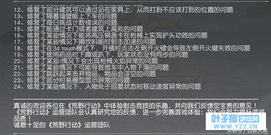 当然公告的最后肯定是少不了一些修复的问题啦。这也是小编为什么一直喜欢荒野行动这个游戏的原因之一。因为它一直在弥补自己的不足。