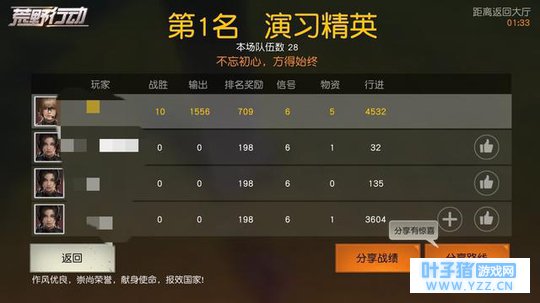 【集合准备团战】 在进圈的路线上不可避免的会遭遇敌人,这时候身为老司机的你,沉着冷静是最重要的。新手中枪,你大概会听到“有人打我”,“哎呀有人”之类,这对判断敌人方位起不到太大作用。若是无法迅速判断敌人数量,则应该迅速隐蔽。这时候有人被击倒了也万万不可贸然去扶,寻找天然掩体或车辆,释放烟雾弹或队友开枪掩护是十分必要的。而如果伤亡太大,及时的撤退也很必要,甚至偷偷的卖一波队友。在决赛圈之外互相架枪,往往两败俱伤。