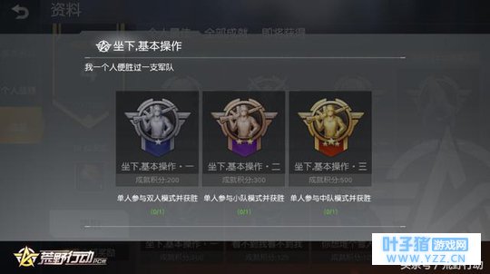 而“坐下,基本操作”这个成就对个人能的要求非常高。想要完成此成就必须单人参与双人模式、小队模式、中队模式并且获得胜利。