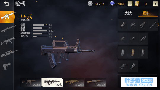 新出的95式步枪拥有略大于M4A1和SACR的伤害,满配后拥有步枪中最高的射速(和M4A1持平)和最低的后坐力,相信会成为“满配党”们的新宠。这把枪的具体表现如何,就需要各位玩家在游戏中自行体验了。
