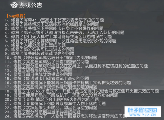 大量的BUG也在本次更新中被修复,隔着墙壁上下车、4级头、爬着跑等神级操作可能再也见不到了。你会怀念当年苦练的卡门上屋顶操作吗?