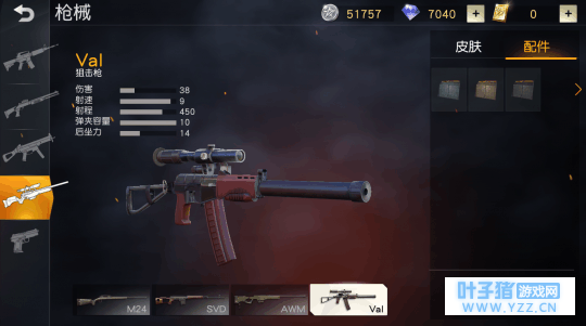 而Val作为新出的连狙,伤害比步枪还低。但这把枪自带四倍镜和消声器的设定,可以让玩家刚开局就能压制远处的敌人,可以说是狙击手落地时最理想的武器选择。