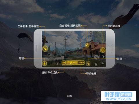 操作界面清晰 高交互性和易用性 《荒野行动》作为一款FPS游戏,首先决定可玩性的就是键位设置和操作界面是否人性化。而这款作品在这一方面表现也比较突出,大家比较熟悉的是屏幕左边虚拟摇杆控制人物走动,右边虚拟摇杆控制方向,但是《荒野行动》还加入了自由视角按键,可以让玩家在不用操作摇杆的情况下更为便利得观察四周情况,及时应对战场变化。