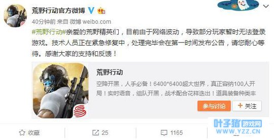 小编也去荒野行动的官方微博下查询了,原来系统已经在紧急维护,工程师们已经在加班加点修复 请各位玩家耐心等待,不要焦急