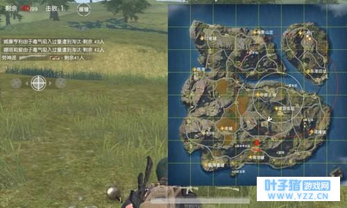 喏,地图上的圈你看到了吗?你至少要保证自己在红圈里,当然白圈最安全啦~