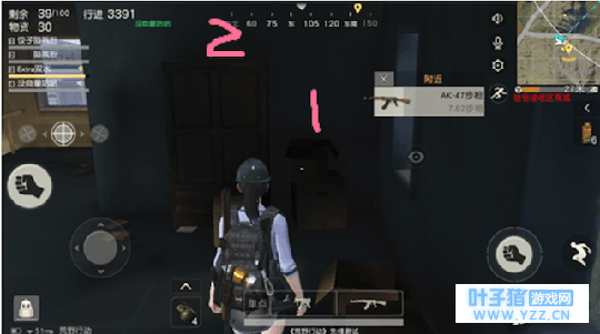 可以从房檐上得到一小部分视野。 虽然我们可以从这里看到外面的视野,但是敌人却不能从外面打中我们。 最后分享一个在老城的四栋红楼的地方如何在三楼卡楼顶视野。 来,我们先1后2。